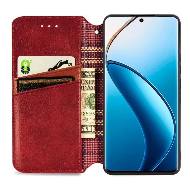 Θήκη τηλεφώνου Realme 12+ Cubic Grid Pressed Magnetic Leather (Μαύρο)