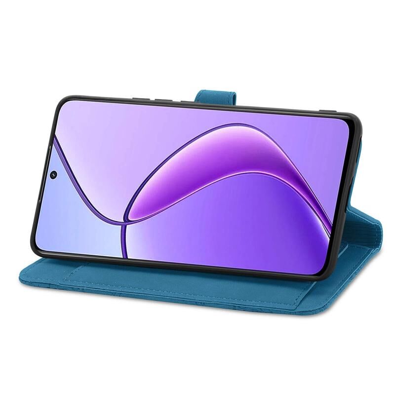 Για Realme 12 ανάγλυφο λουλούδι φερμουάρ δερμάτινη θήκη τηλεφώνου (μπλε)