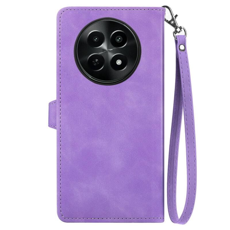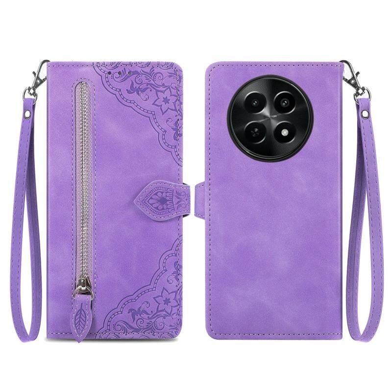 Για Realme 12 ανάγλυφο λουλούδι φερμουάρ δερμάτινη θήκη τηλεφώνου (μωβ)