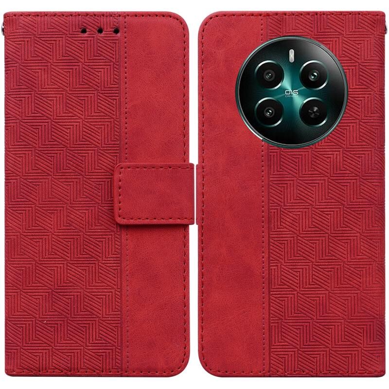Για Realme 12+ Γεωμετρική ανάγλυφη δερμάτινη θήκη τηλεφώνου (κόκκινο)