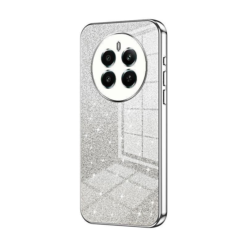For Realme 12+ Gradient Glitter Powder Electroplated Phone Case(Silver)