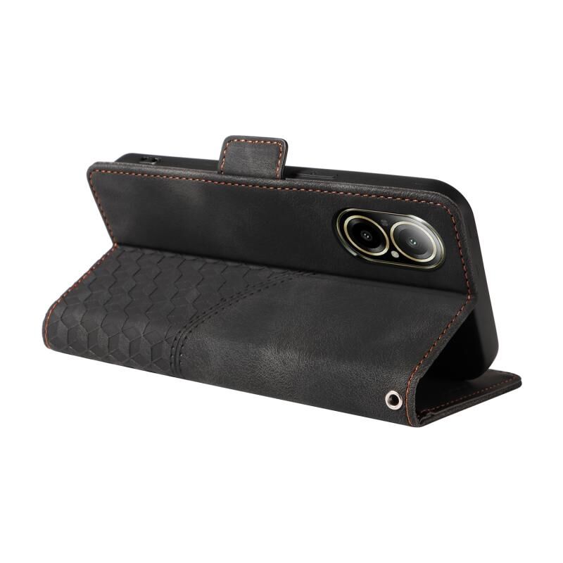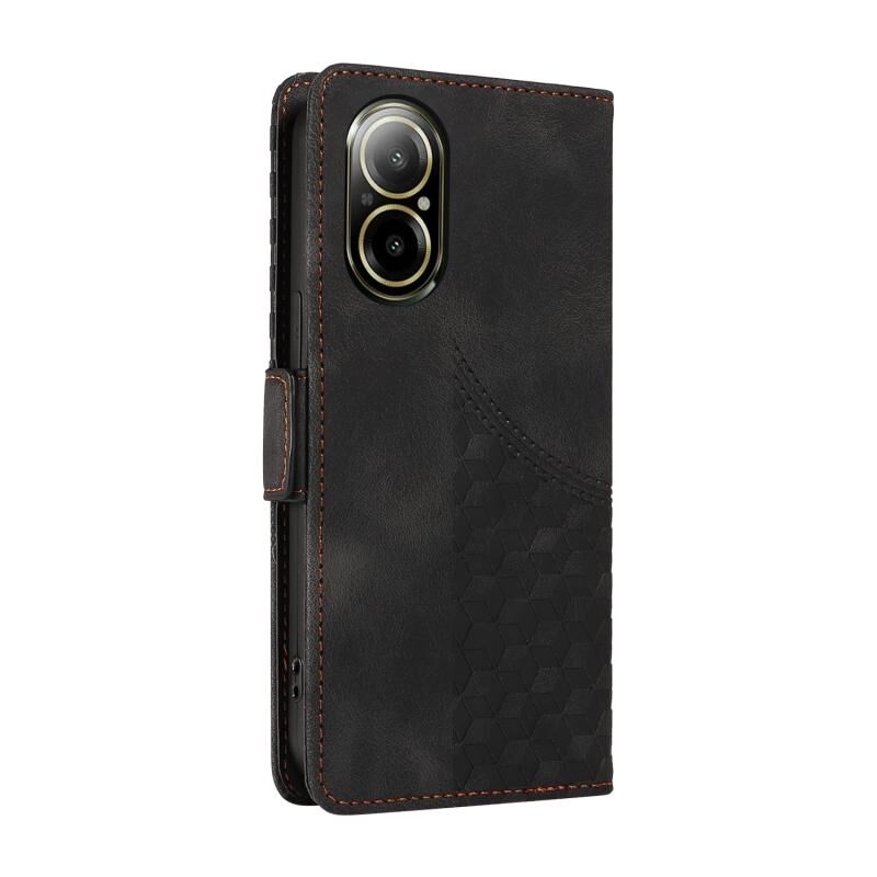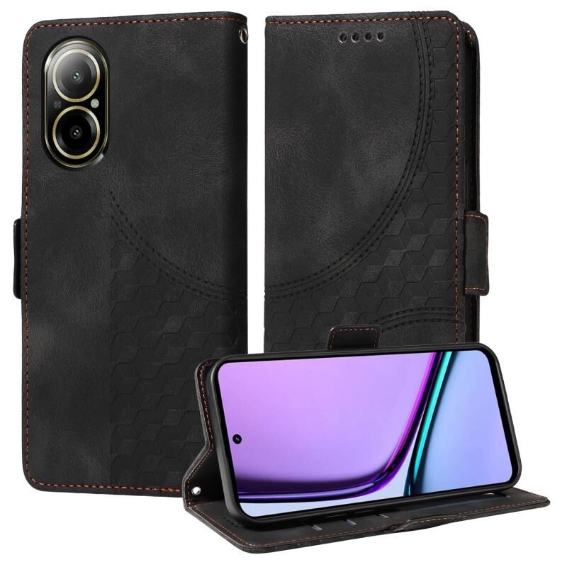 For Realme 12 Lite 4G Global Embossed Rhombus Starry Leather Phone Case(Black)