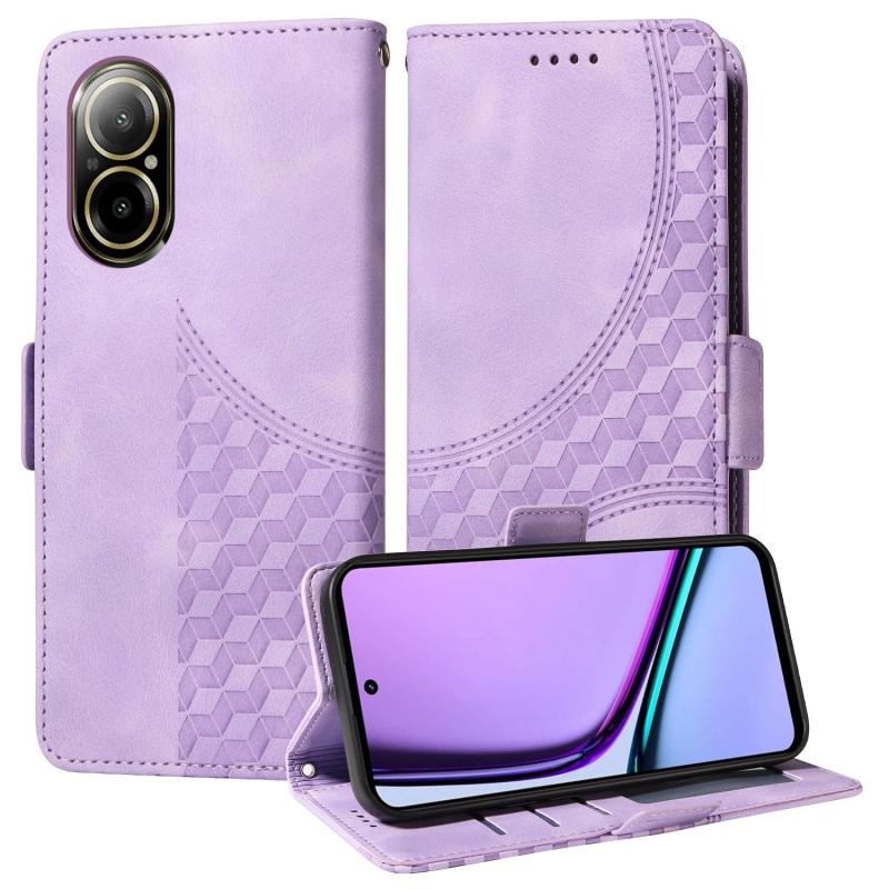 For Realme 12 Lite 4G Global Embossed Rhombus Starry Leather Phone Case(Purple)