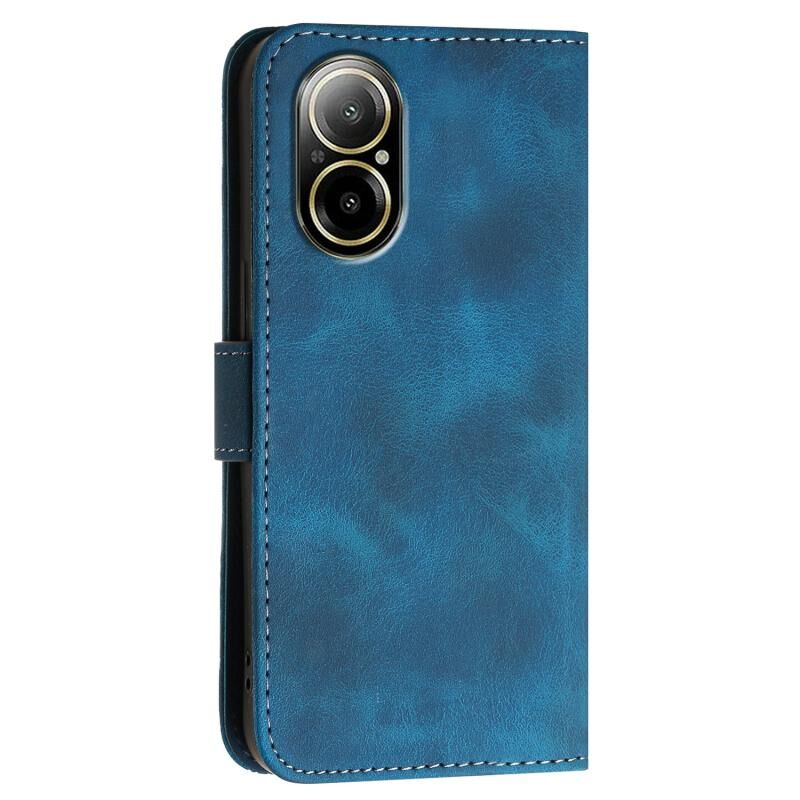 For Realme 12 Lite 4G Global Grid Butterfly Embossed Pattern Leather Phone Case with Lanyard(Dark Blue)