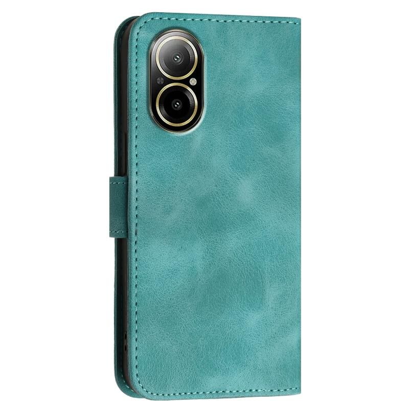 For Realme 12 Lite 4G Global Grid Butterfly Embossed Pattern Leather Phone Case with Lanyard(Light Blue)