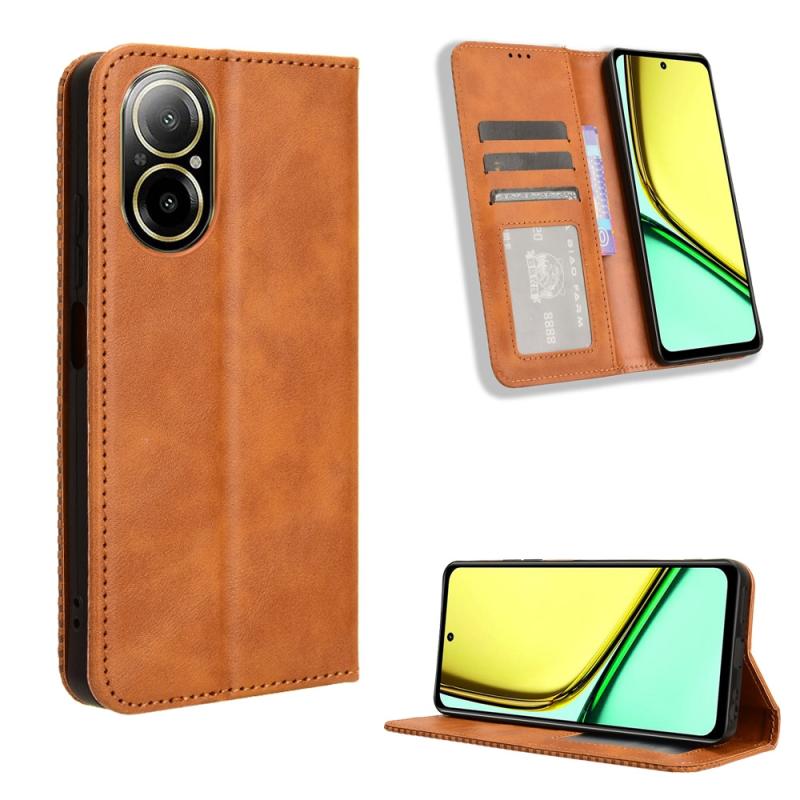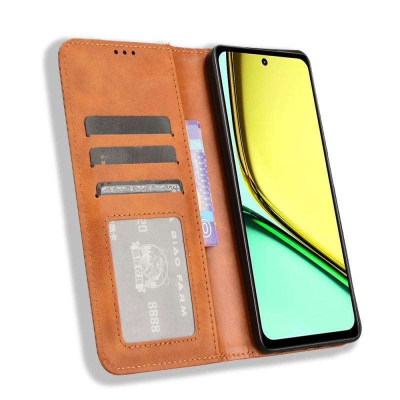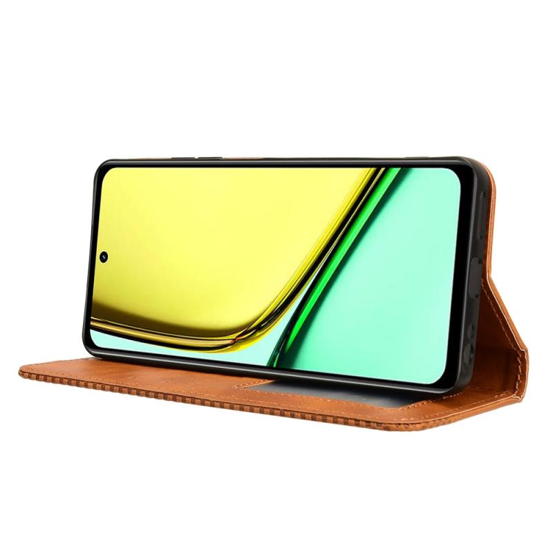 For Realme 12 Lite 4G Magnetic Buckle Retro Texture Leather Phone Case(Brown)
