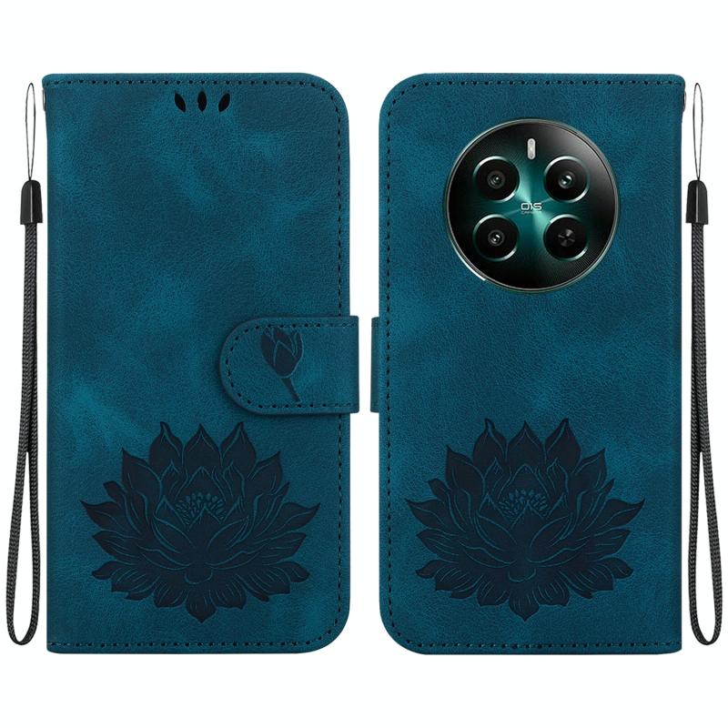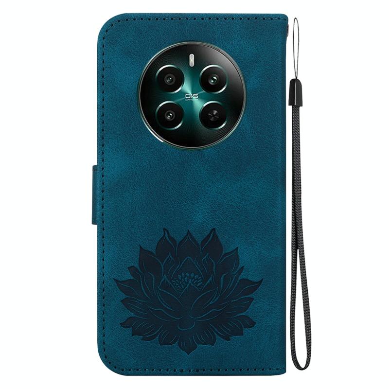 For Realme 12+ Lotus Embossed Leather Phone Case(Dark Blue)