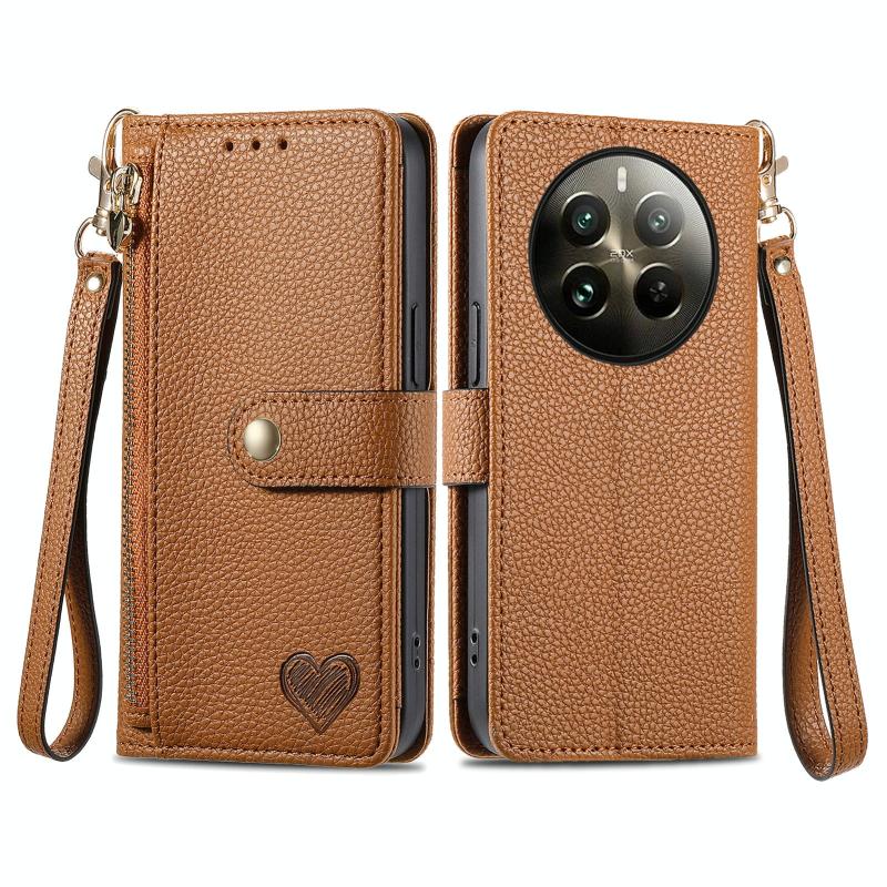 Θήκη Realme 12+ με Δερμάτινο Λουρί και Φερμουάρ Αγάπης (Καφέ)