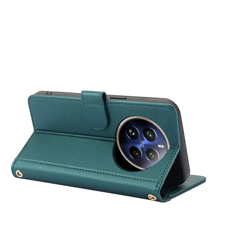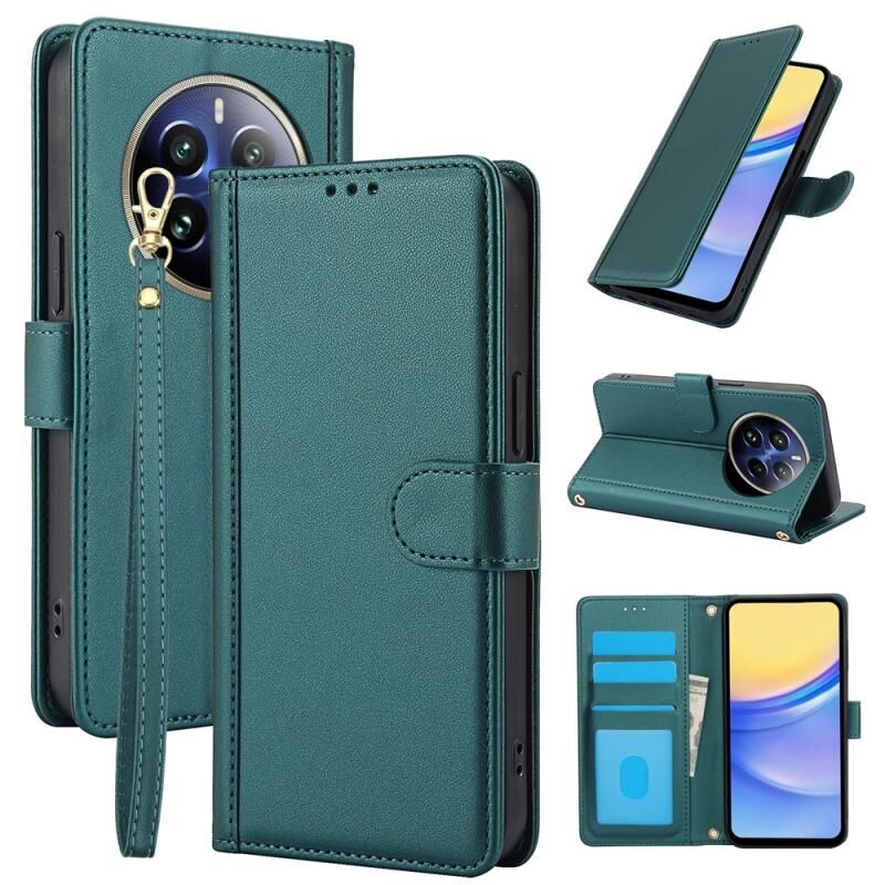 Για Realme 12 + / Narzo 70 Παγκόσμια αίσθηση δέρματος καθαρό χρώμα κάρτα υποδοχές δερμάτινη θήκη τηλεφώνου με διπλό κορδόνι (πράσινο)