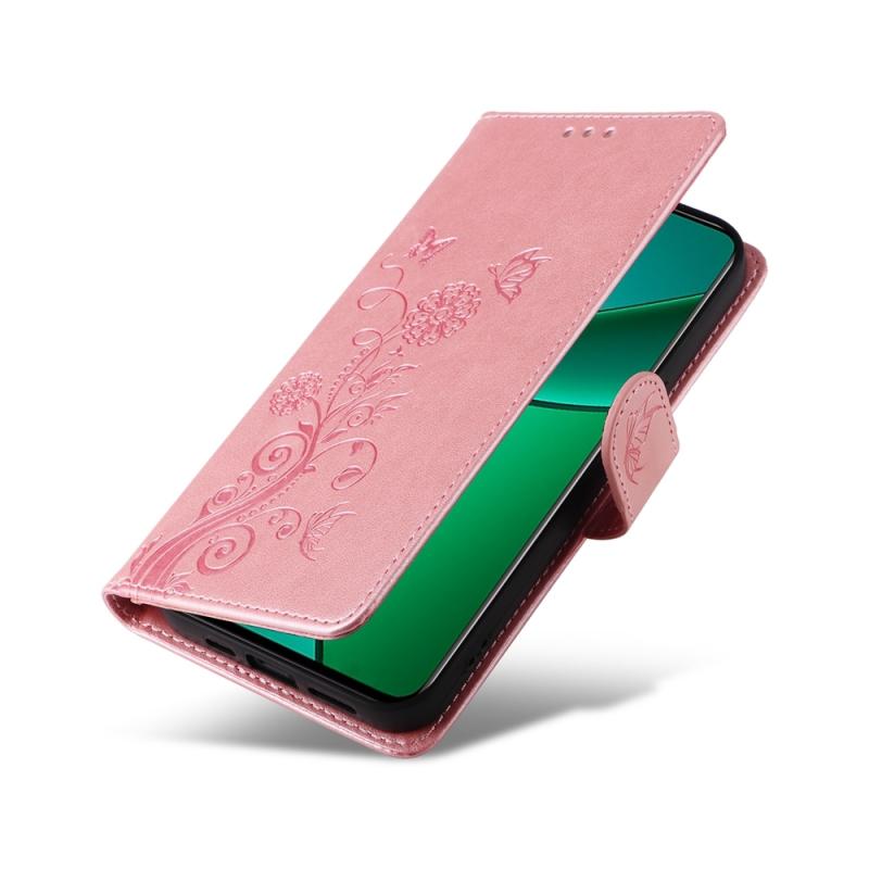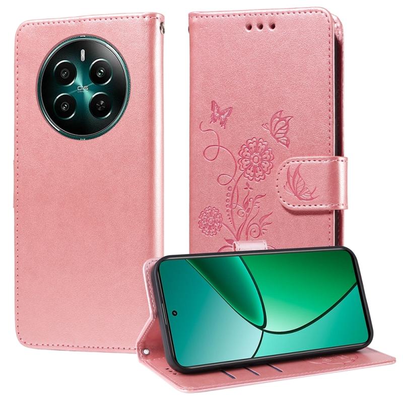 For Realme 12+ / Narzo 70 / Narzo 70 Pro India Embossed Butterfly Flowers Leather Phone Case(Rose Gold)