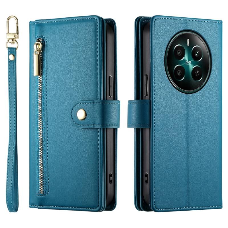 For Realme 12+ / Narzo 70 Pro Nine Card-slot Zipper Wallet Bag Leather Phone Case(Blue)