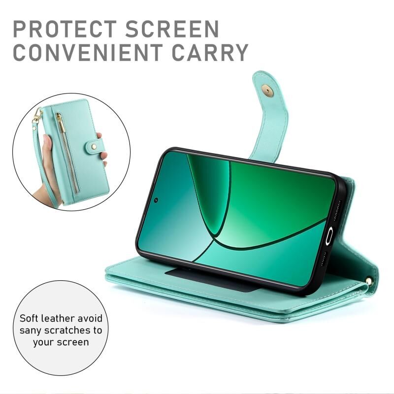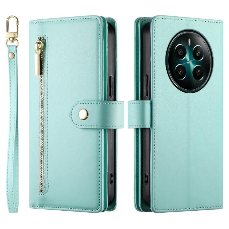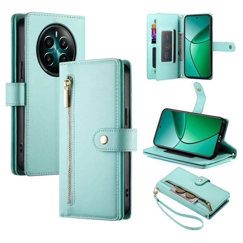 For Realme 12+ / Narzo 70 Pro Nine Card-slot Zipper Wallet Bag Leather Phone Case(Mint Green)