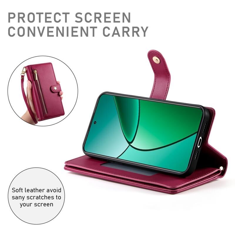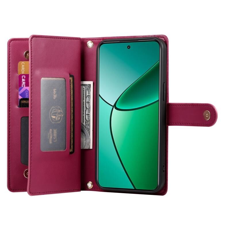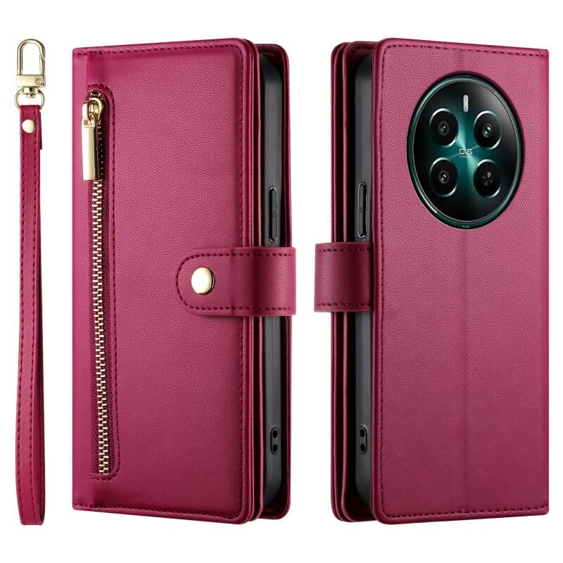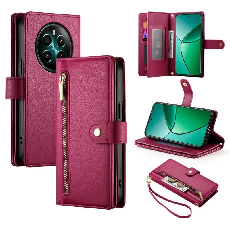 For Realme 12+ / Narzo 70 Pro Nine Card-slot Zipper Wallet Bag Leather Phone Case(Red)