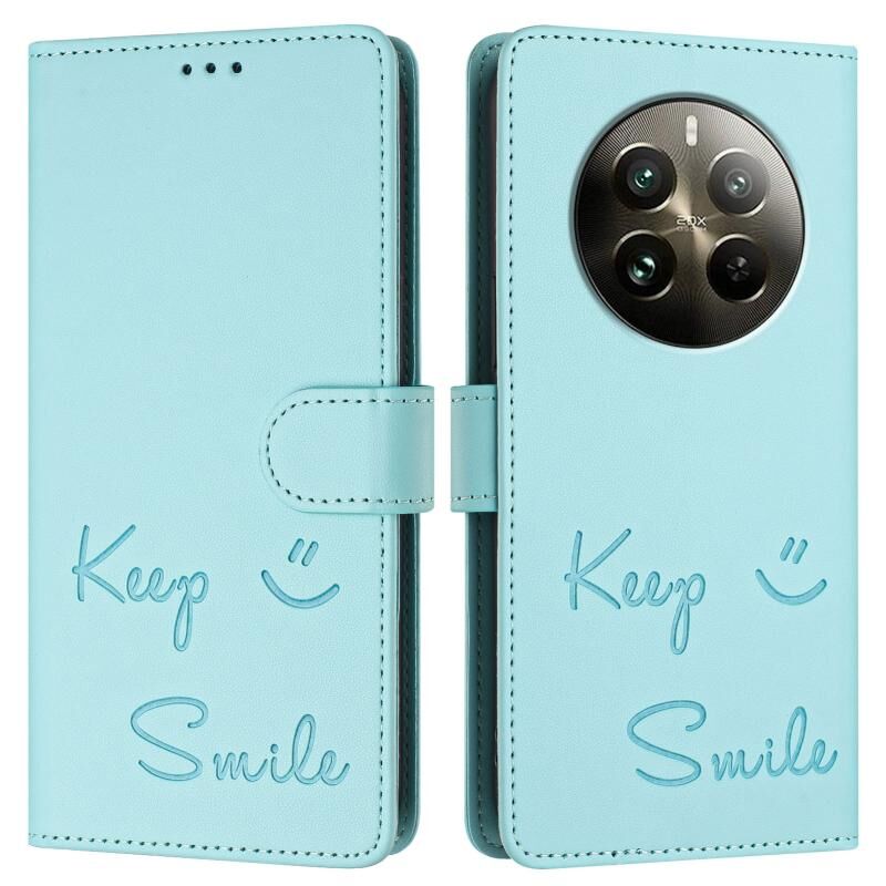 Για Realme 12 Pro / 12 Pro + 5G Παγκόσμια χαμόγελο ανάγλυφο RFID δερμάτινη θήκη τηλεφώνου (πράσινο μέντα)