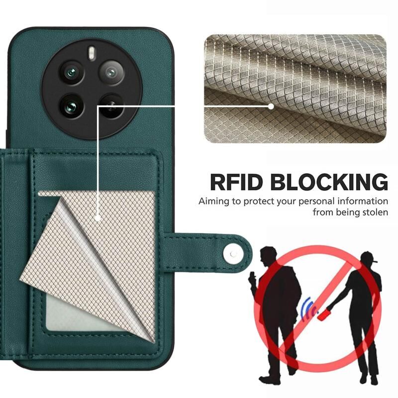 For Realme 12 Pro+ / 12 Pro Button Card Bag RFID Anti-theft Phone Case(Green)