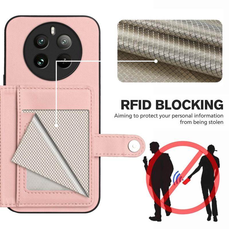 For Realme 12 Pro+ / 12 Pro Button Card Bag RFID Anti-theft Phone Case(Pink)