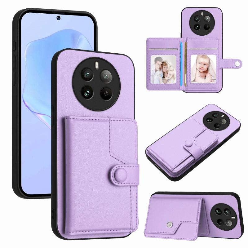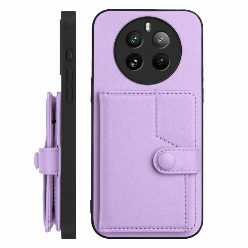 For Realme 12 Pro+ / 12 Pro Button Card Bag RFID Anti-theft Phone Case(Purple)