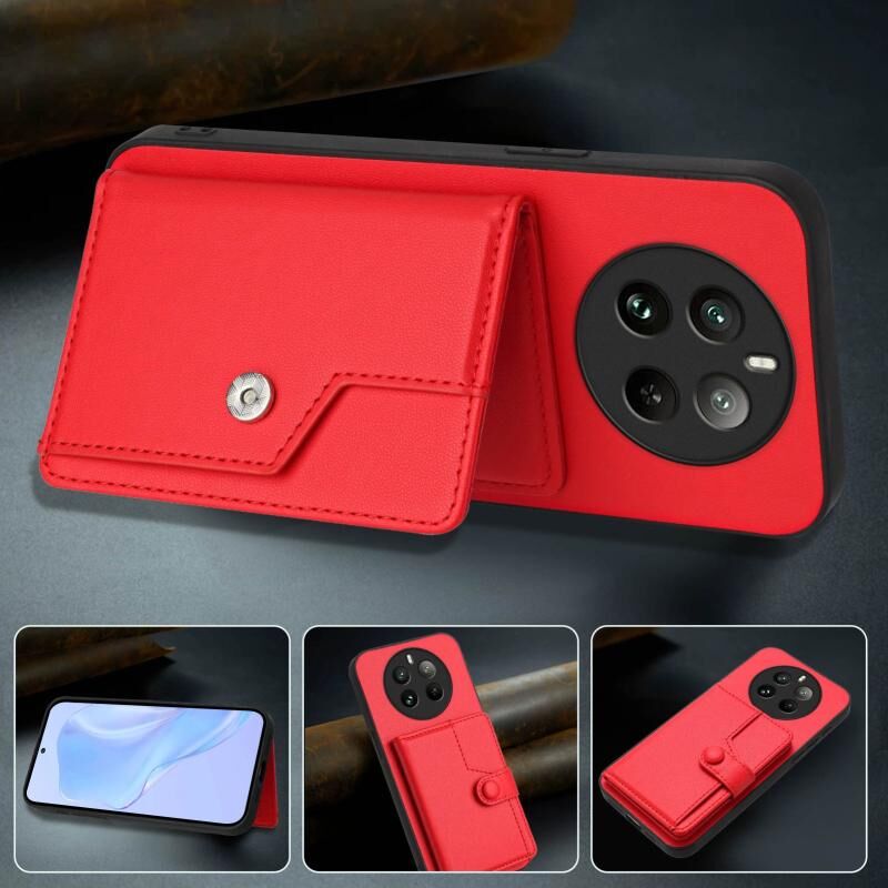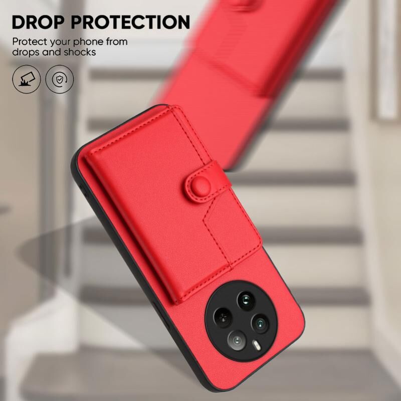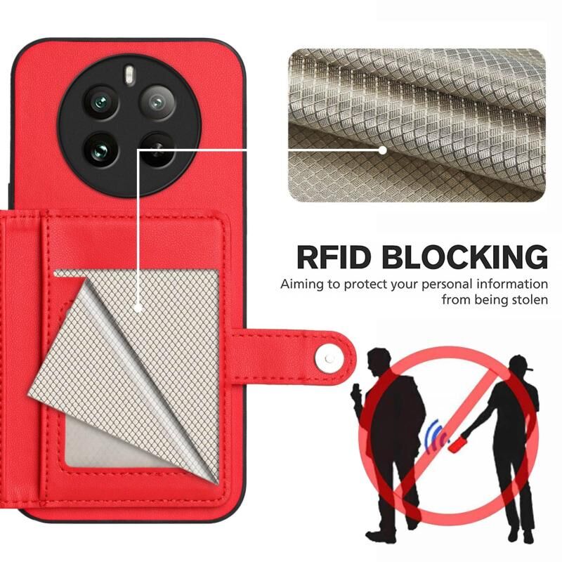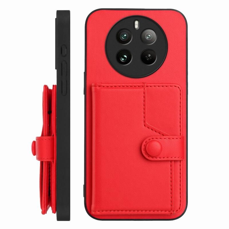 For Realme 12 Pro+ / 12 Pro Button Card Bag RFID Anti-theft Phone Case(Red)