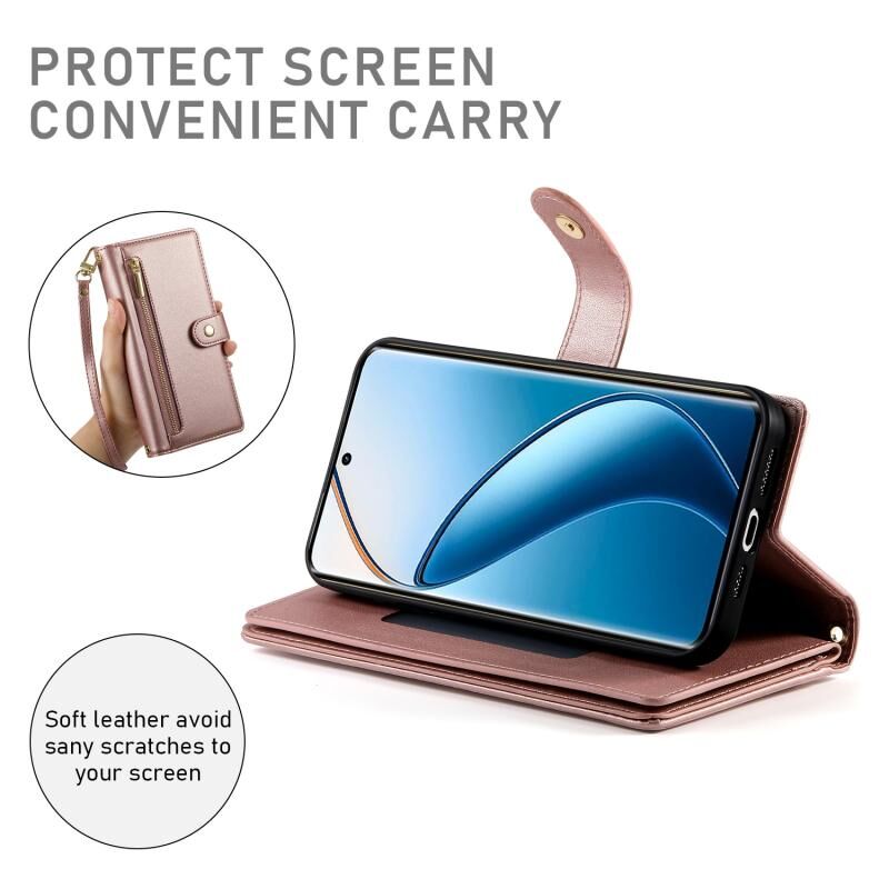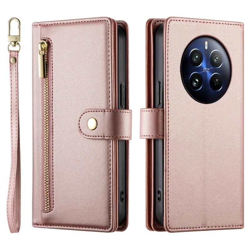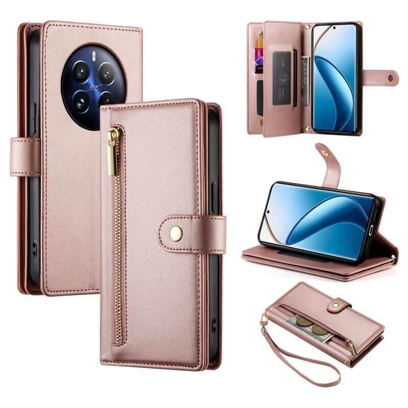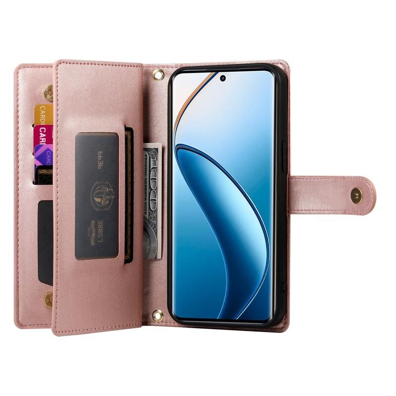 For Realme 12 Pro / 12 Pro+ Nine Card-slot Zipper Wallet Bag Leather Phone Case(Pink)