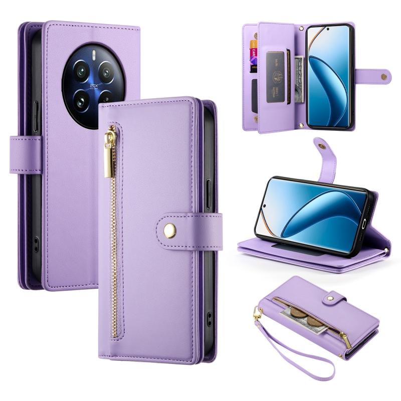 For Realme 12 Pro / 12 Pro+ Nine Card-slot Zipper Wallet Bag Leather Phone Case(Purple)