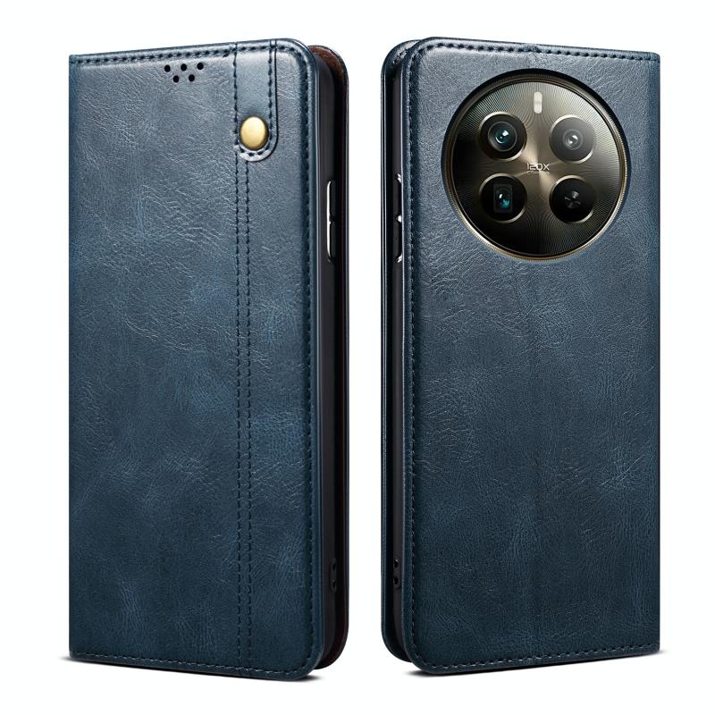 Θήκη τηλεφώνου από δέρμα με υφή Crazy Horse και κερί λαδιού για Realme 12 Pro / 12 Pro+ (Μπλε)
