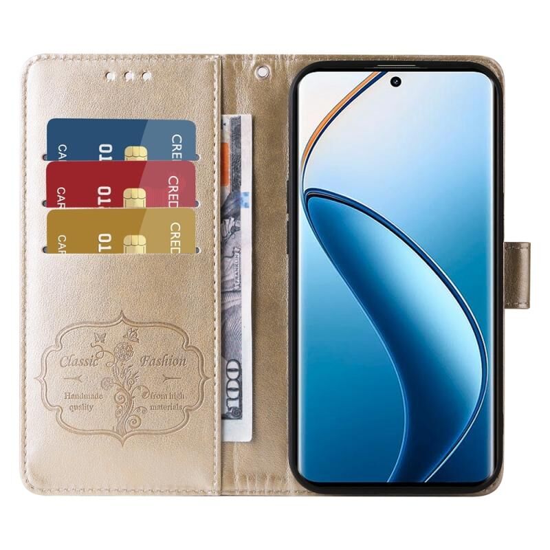 For Realme 12 Pro / 12 Pro+ / P1 Pro Global Embossed Butterfly Flowers Leather Phone Case(Gold)
