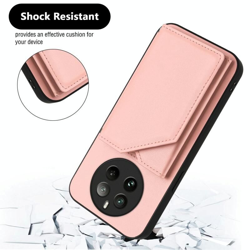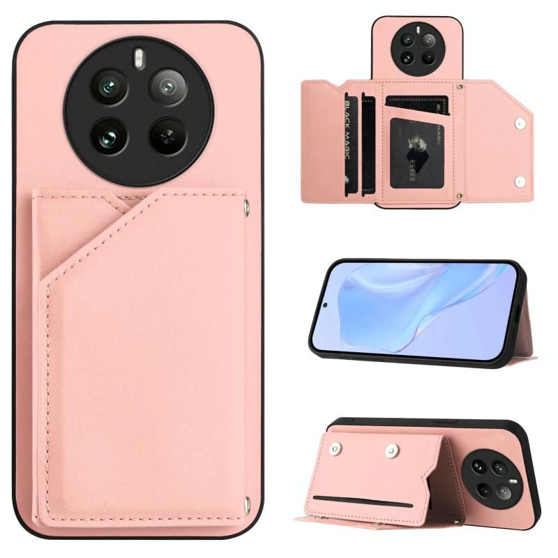 Για Realme 12 Pro + / 12 Pro Skin Feel Τέσσερις υποδοχές καρτών υπόθεση τηλεφώνου με λουράκι καρπού (ροζ)