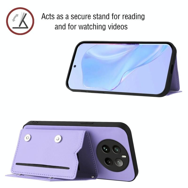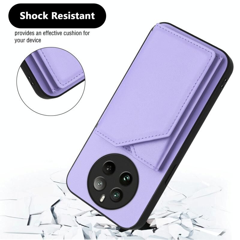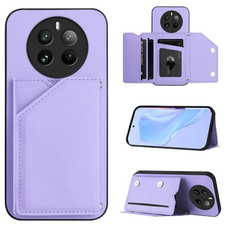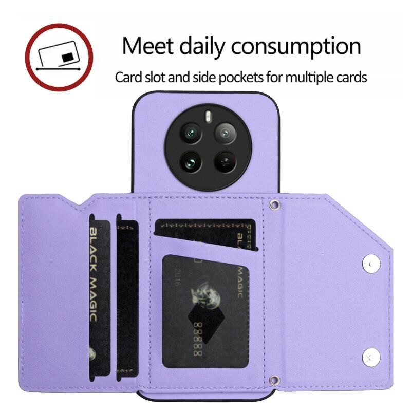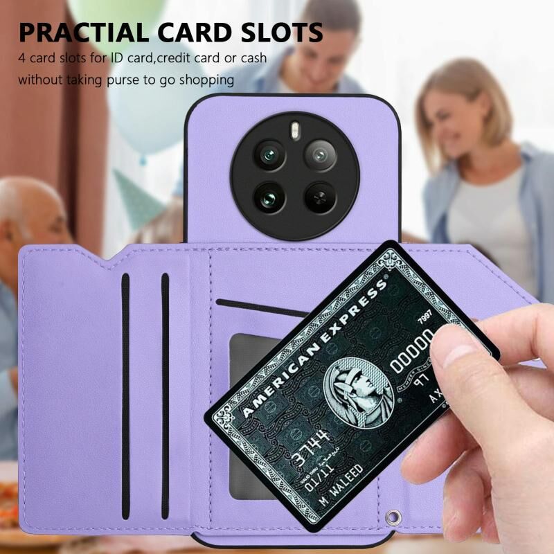 Για Realme 12 Pro + / 12 Pro Skin Feel Τέσσερις υποδοχές καρτών υπόθεση τηλεφώνου με λουράκι καρπού (μωβ)