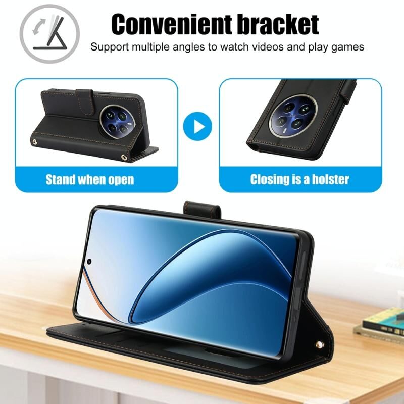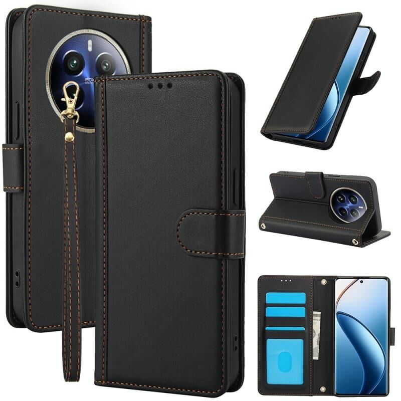 Για Realme 12 Pro / 12 Pro + Skin Feel Pure Color Card Slots Δερμάτινη θήκη τηλεφώνου με διπλό κορδόνι (Μαύρο)