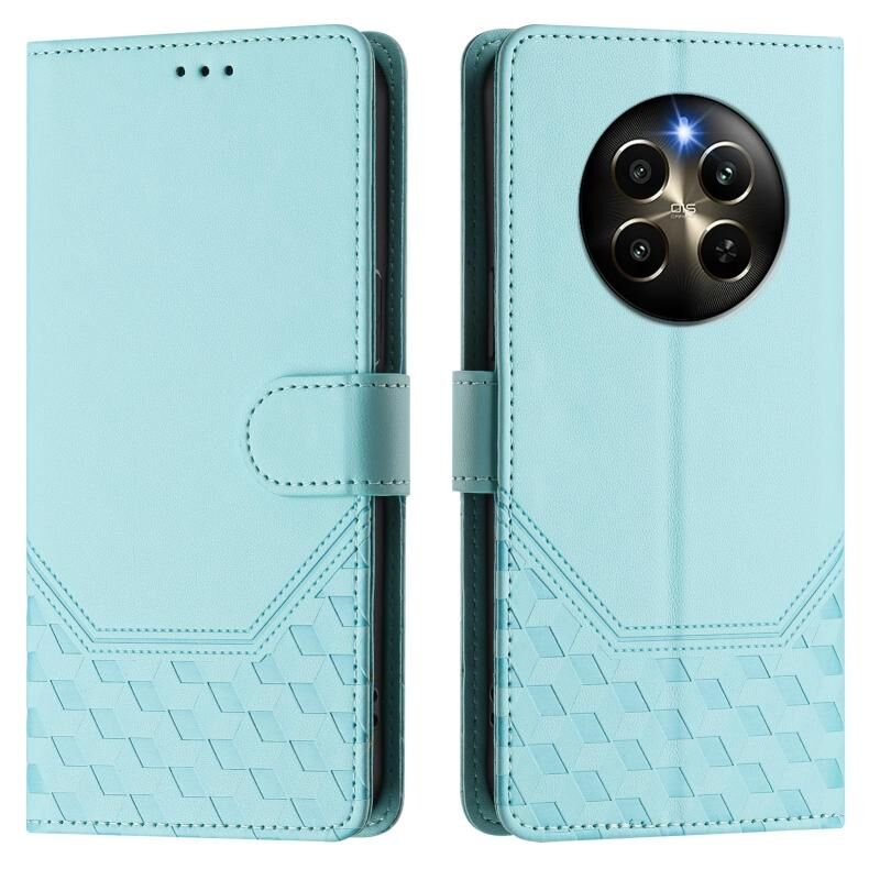 Για Realme 12 Pro 5G / 12 Pro + 5G Global Honeycomb ανάγλυφη RFID δερμάτινη θήκη τηλεφώνου (πράσινο μέντα)