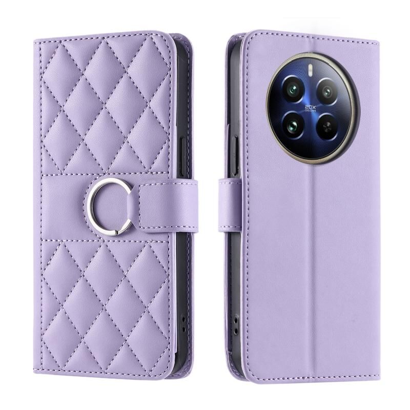 For Realme 12 Pro 5G / 12 Pro+ 5G Ring Buckle Rhombic Leather Phone Case(Purple)