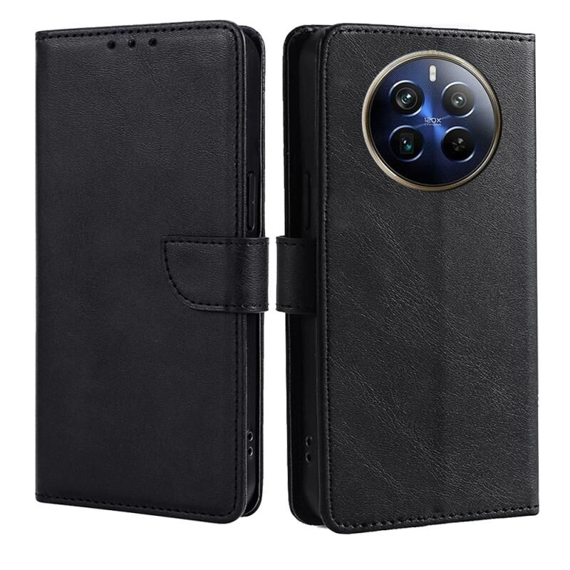 Για Realme 12 Pro 5G Calf Texture Buckle Flip υπόθεση τηλεφώνου δέρμα (Μαύρο)