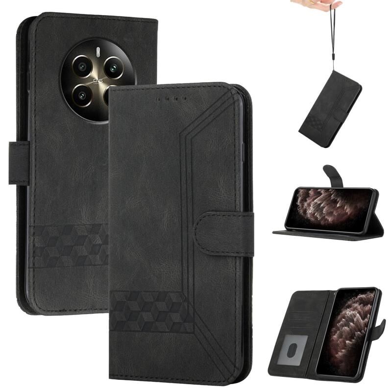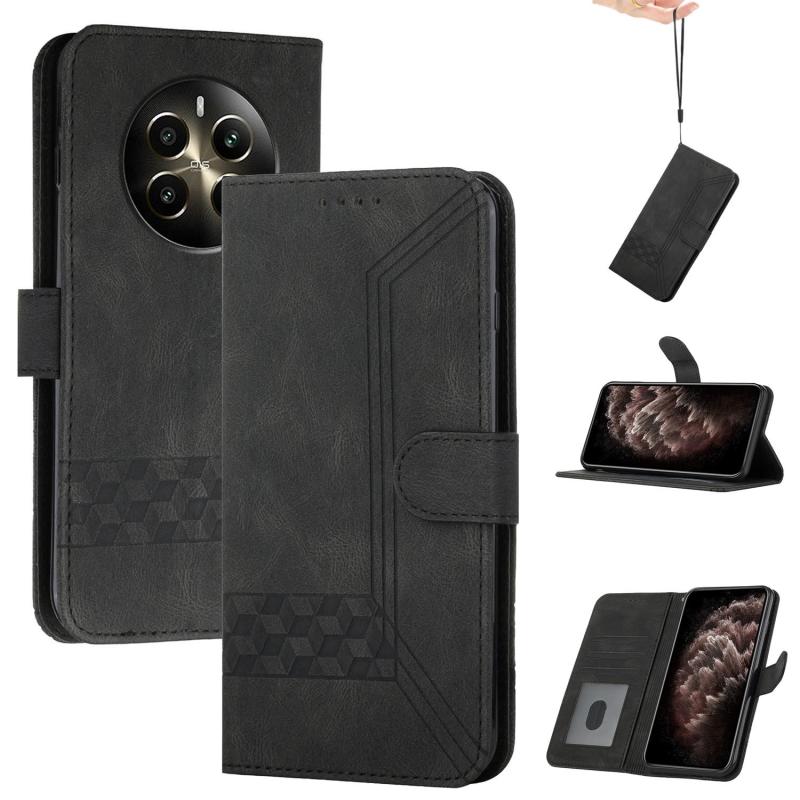 For Realme 12 Pro 5G Global/12 Pro+ 5G Global Cubic Skin Feel Flip Leather Phone Case(Black)