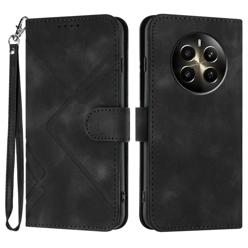 Για Realme 12 Pro 5G Global/12 Pro+ 5G Global Line Pattern Skin Feel Leather Phone Case (Μαύρο)