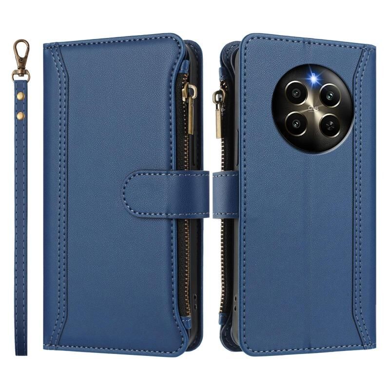 For Realme 12 Pro 5G Global / P1 Pro 5G Magnetic Closure 9 Card Slots Zipper Leather Case with Hand Strap(Dark Blue)
