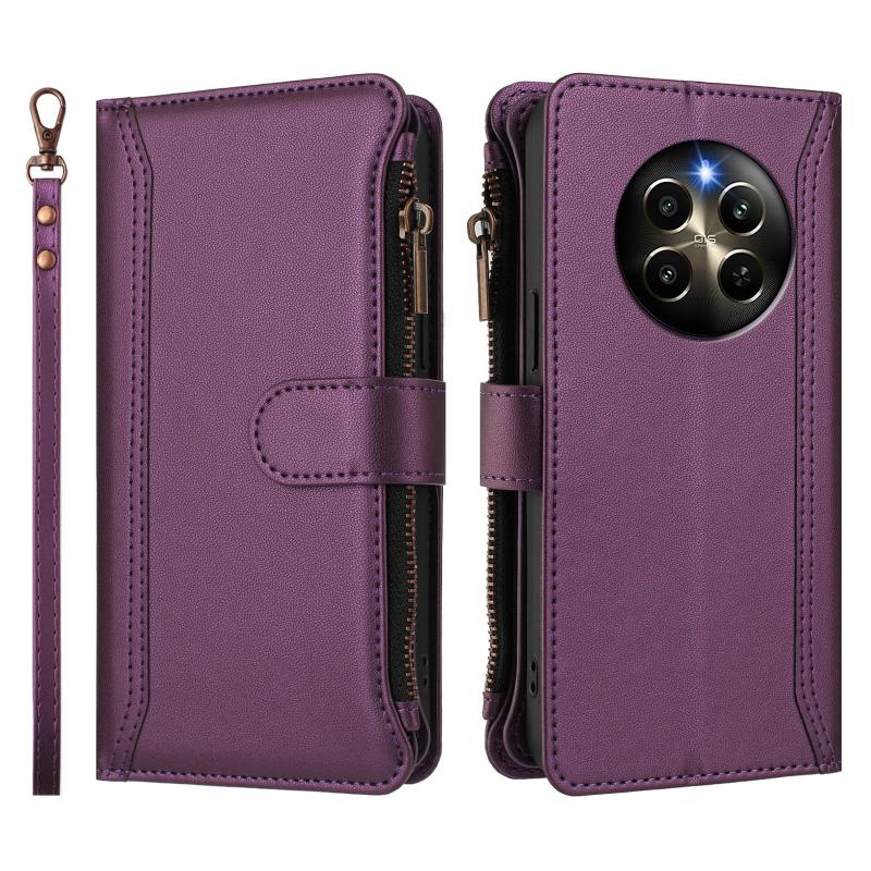 For Realme 12 Pro 5G Global / P1 Pro 5G Magnetic Closure 9 Card Slots Zipper Leather Case with Hand Strap(Purple)