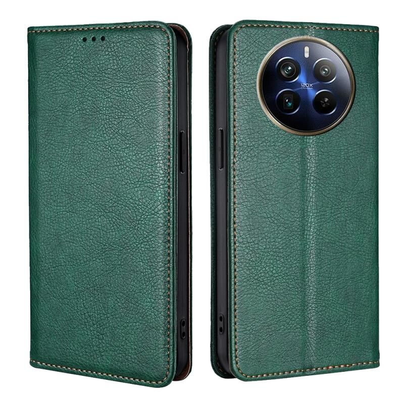 For Realme 12 Pro 5G Gloss Oil Solid Color Magnetic Leather Phone Case(Green)
