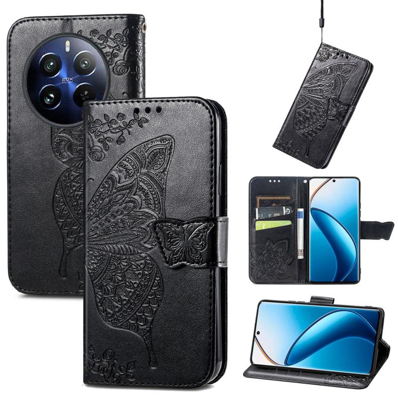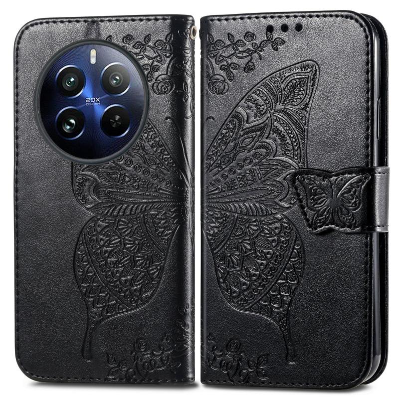 Θήκη τηλεφώνου Realme 12 Pro Butterfly Love Flower Embossed Leather (Μαύρο)