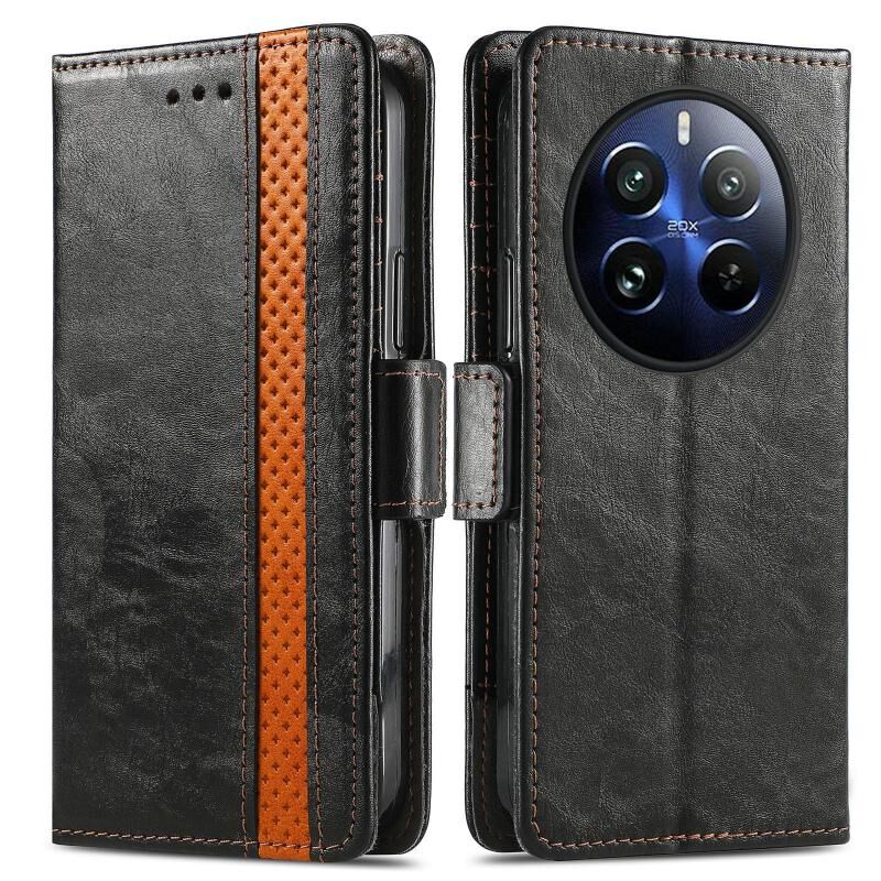 Για Realme 12 Pro CaseNeo Splicing Διπλή μαγνητική πόρπη δερμάτινη θήκη τηλεφώνου (μαύρο)
