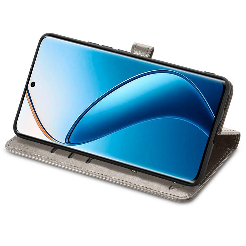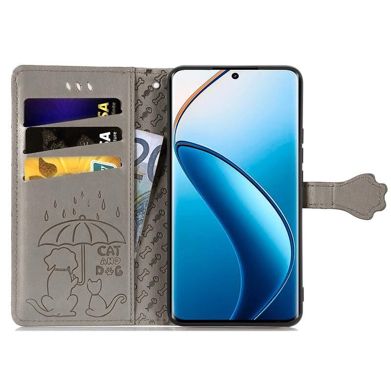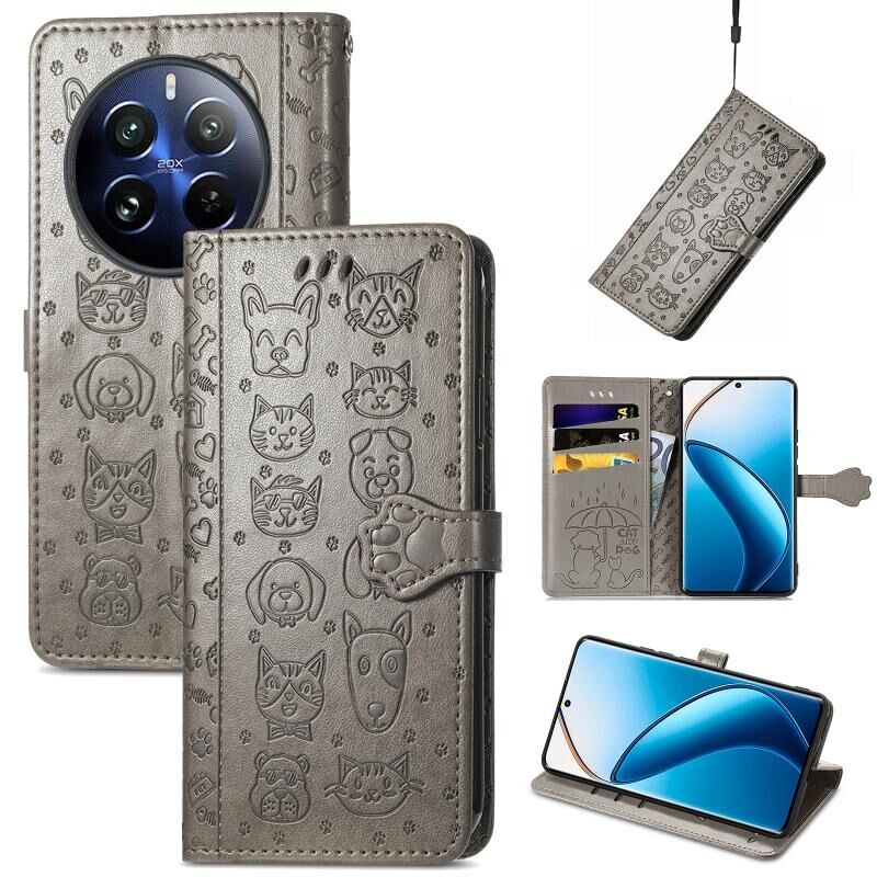 Θήκη τηλεφώνου από δέρμα με ανάγλυφο σχέδιο γάτας και σκύλου για Realme 12 Pro (Γκρι)
