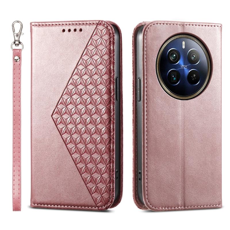 Θήκη τηλεφώνου από μαγνητικό δέρμα για Realme 12 Pro+ με υφή Cubic Grid Calf (Κίτρινο)