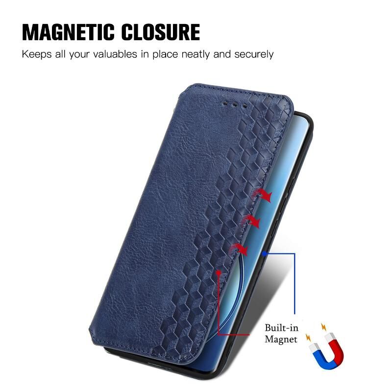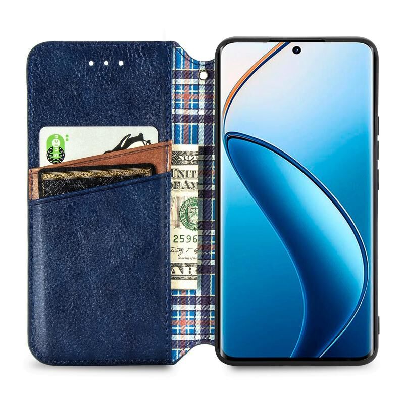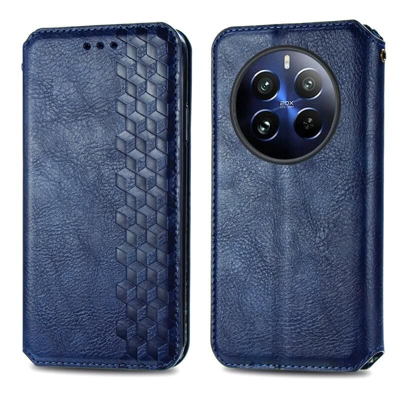 Για Realme 12 Pro Cubic Grid Pressed μαγνητική δερμάτινη θήκη τηλεφώνου (μπλε)