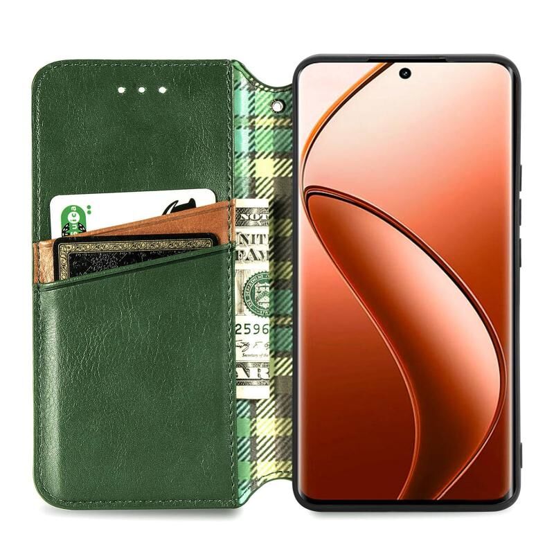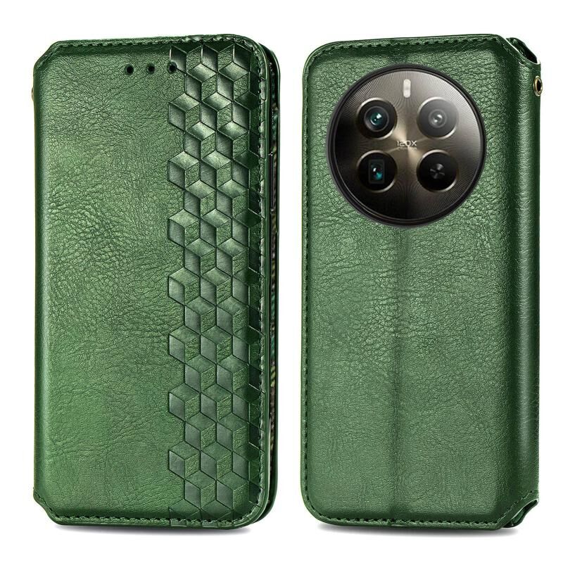 Για Realme 12 Pro+ Cubic Grid Pressed μαγνητική δερμάτινη θήκη τηλεφώνου (πράσινο)