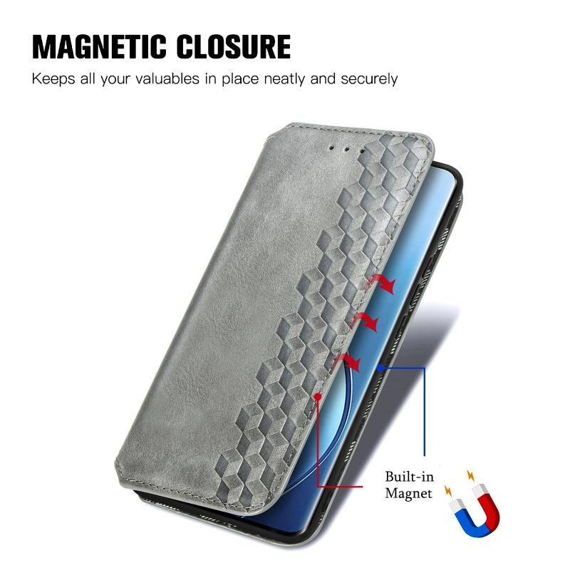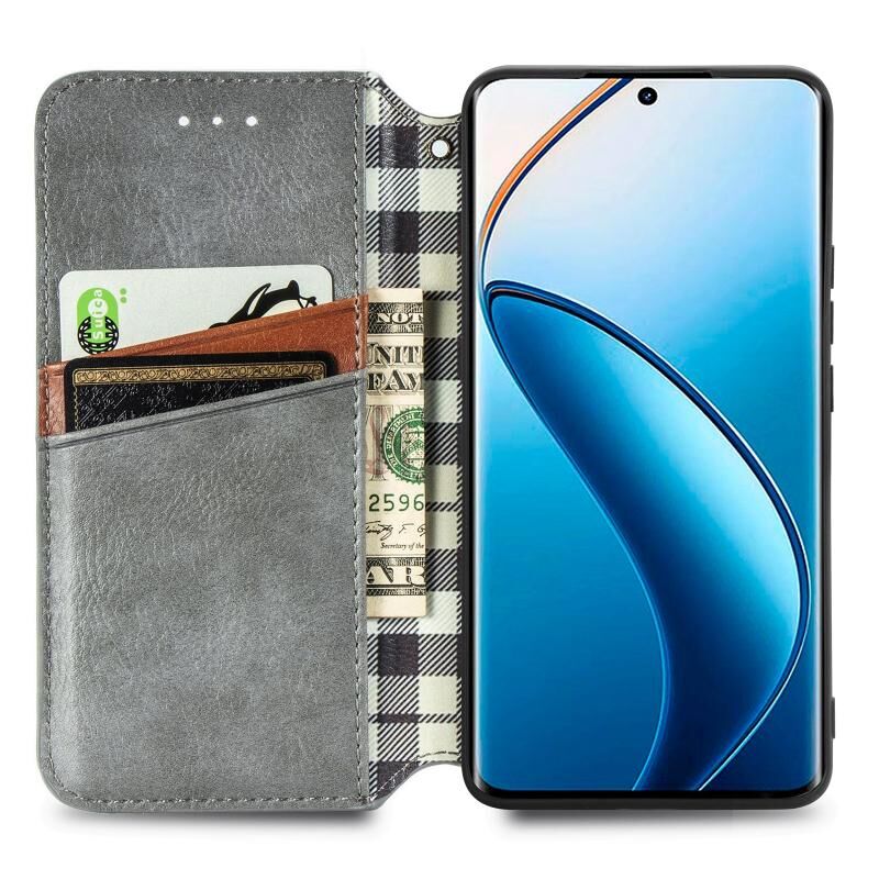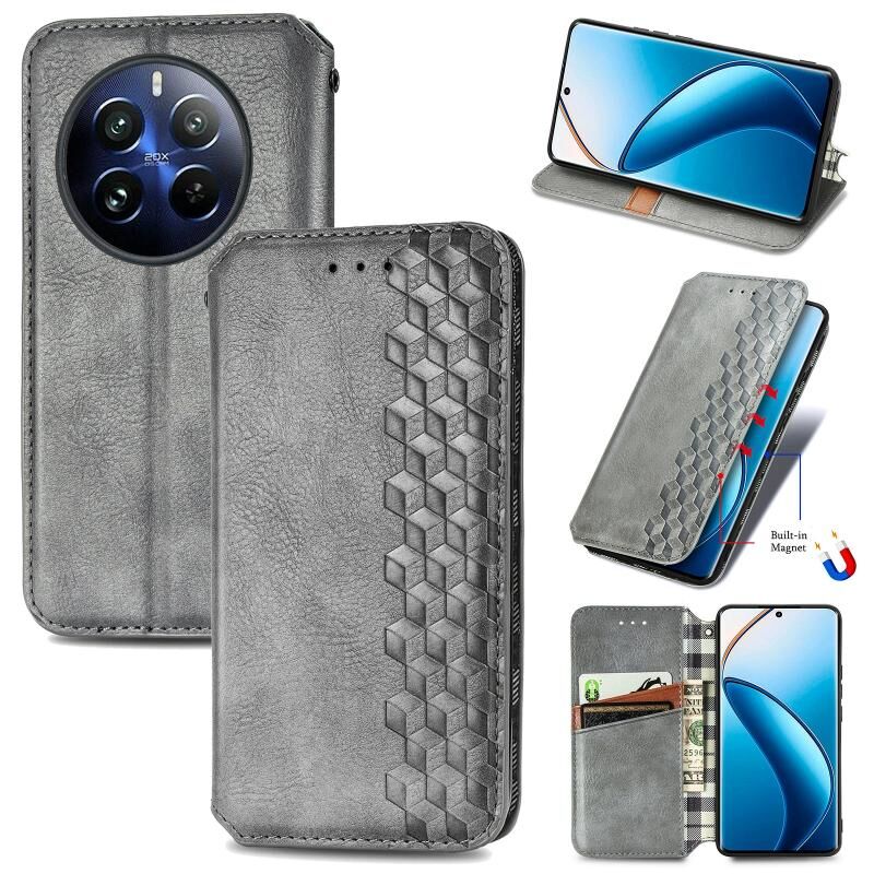 Για Realme 12 Pro Cubic Grid Pressed μαγνητική δερμάτινη θήκη τηλεφώνου (γκρι)