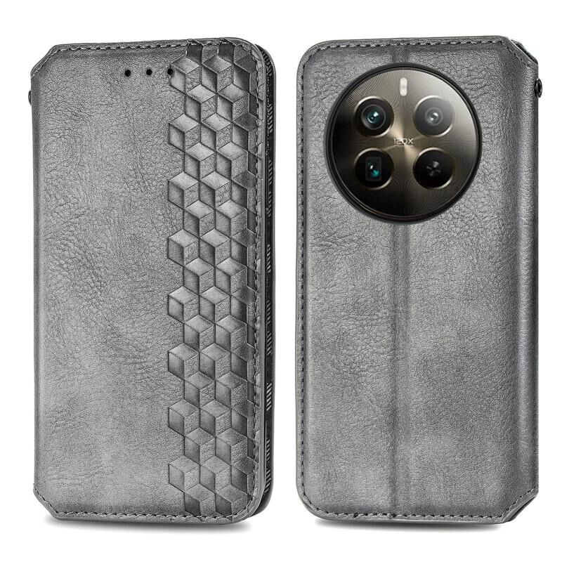 Για Realme 12 Pro+ Cubic Grid Pressed μαγνητική δερμάτινη θήκη τηλεφώνου (γκρι)