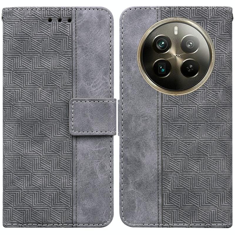 Για Realme 12 Pro+ Παγκόσμια γεωμετρική ανάγλυφη δερμάτινη θήκη τηλεφώνου (γκρι)