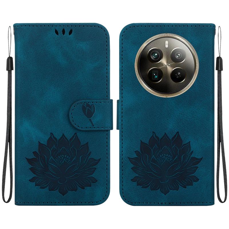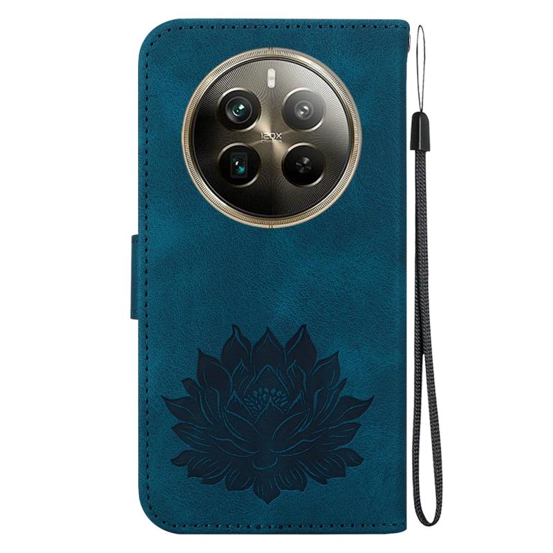 For Realme 12 Pro+ Global Lotus Embossed Leather Phone Case(Dark Blue)