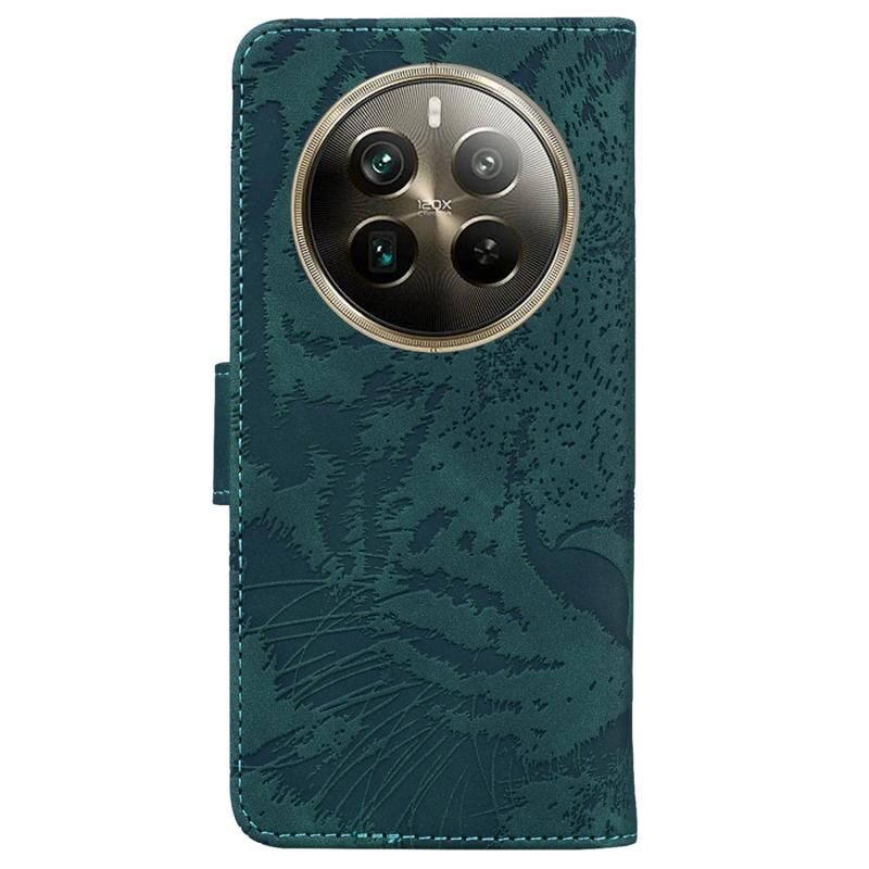 For Realme 12 Pro+ Global Tiger Embossing Pattern Flip Leather Phone Case(Green)