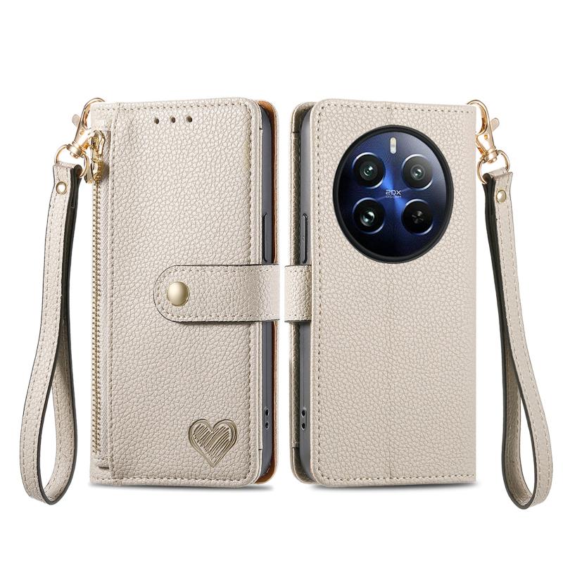 Θήκη Realme 12 Pro Δερμάτινη με Λουρί και Φερμουάρ Love (Γκρι)