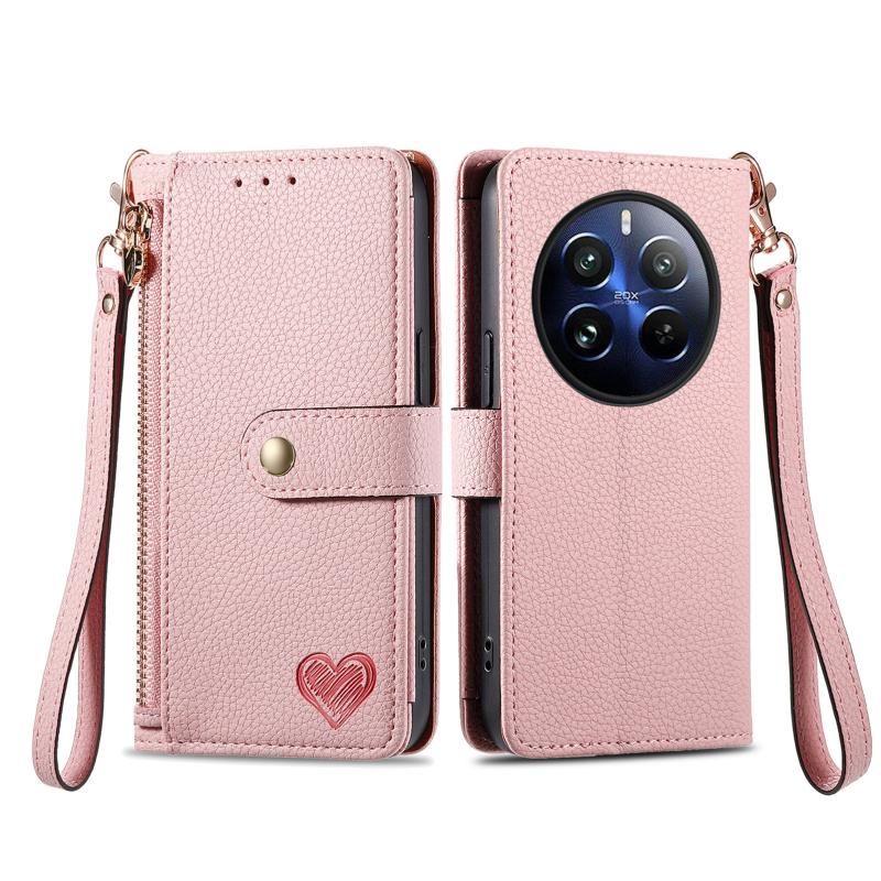 Θήκη Realme 12 Pro Δερμάτινη με Λουρί και Φερμουάρ Love (Ροζ)